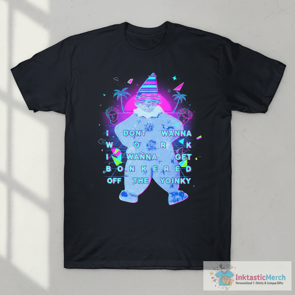Unleash your inner rebel with the I Dont Wanna Work I Wanna Get Bonkered Off The Yoinky T-shirt. This tee is more than just clothing; it’s a statement piece for those who know how to live life to the fullest. Designed for ultimate comfort and style, it perfectly captures a carefree and fun-loving spirit. Whether you’re heading out with friends or just chilling at home, this shirt lets you express your unique personality and your desire for a good time. It’s the ideal way to show off your sense of humor and your laid-back attitude.
