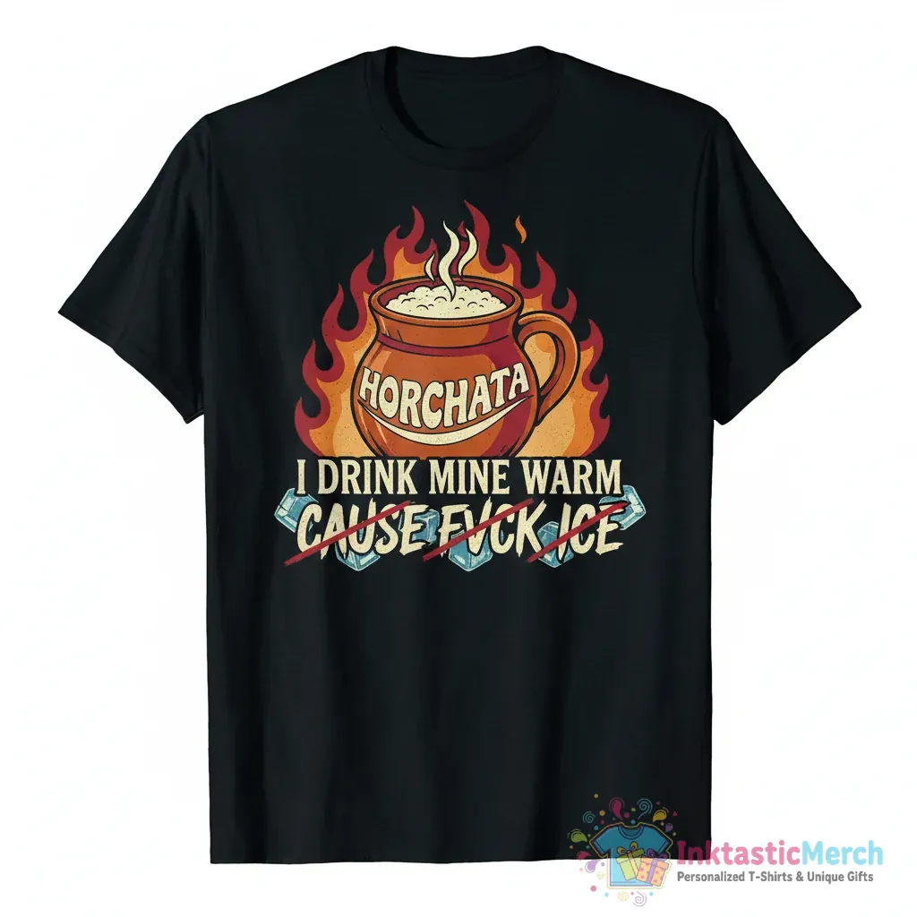 Bring your style to life with the I drink my horchata warm cause fuck ice shirt today!