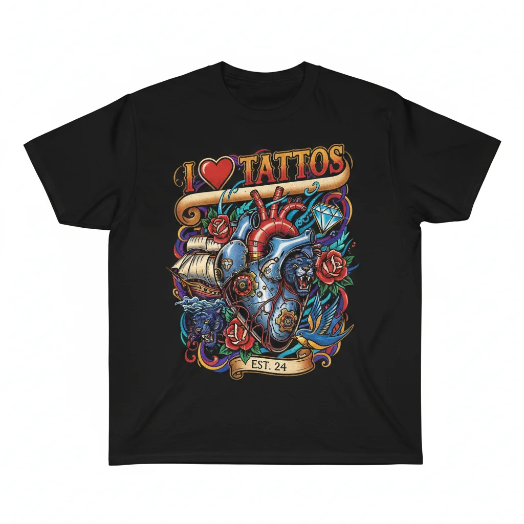 This isn’t just another t-shirt; it’s a statement piece and a future favorite. Its versatile, unisex fit makes it easy to style—tuck it into jeans, layer it under a jacket, or wear it loose for a relaxed look. Celebrate your love for the art of tattoos and add a piece of wearable inspiration to your collection. It’s more than clothing; it’s a way to wear your heart on your sleeve—literally.