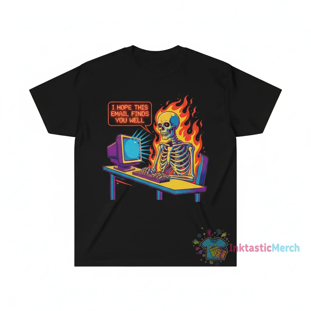 Bring your style to life with the I hope this email finds you well fire Skeleton shirt today!