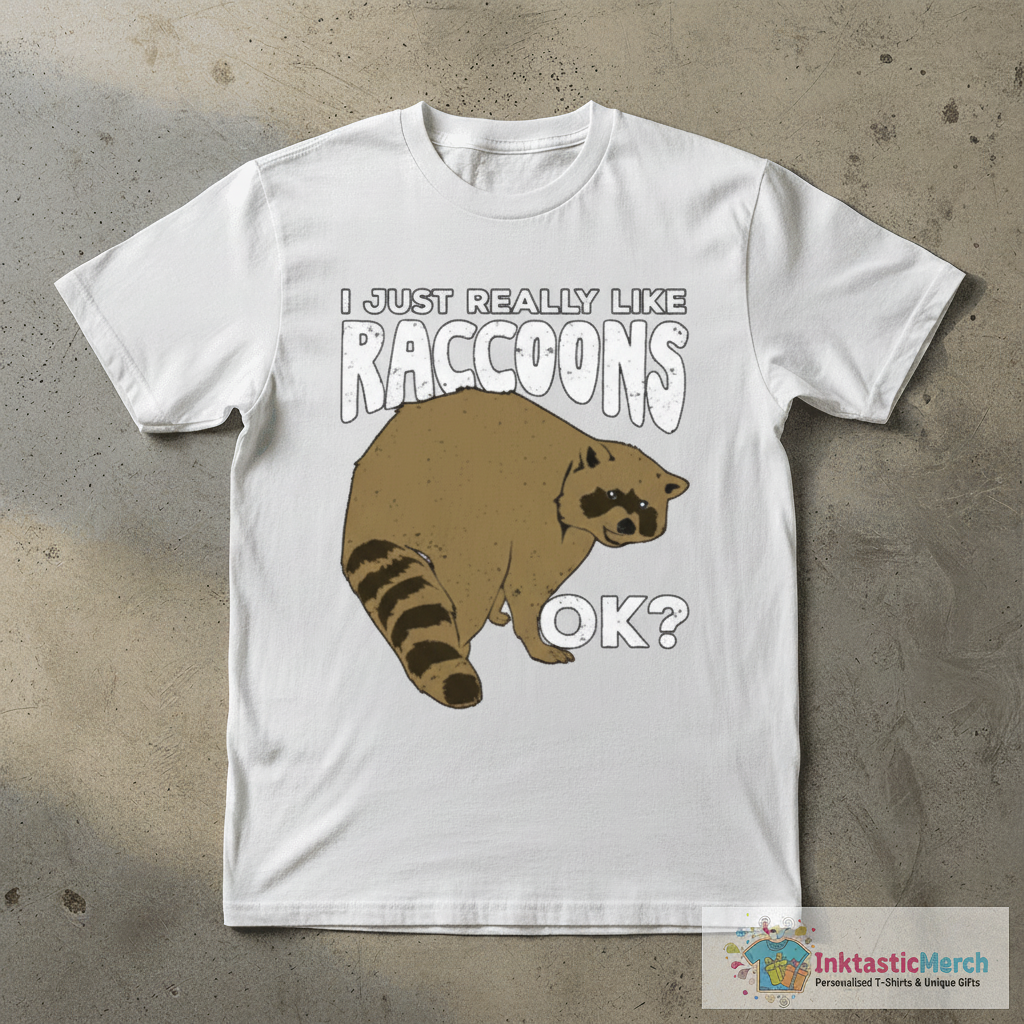 Show off your love for adorable trash pandas with the “I Just Really Like Raccoons Ok T-Shirt.” Crafted from super-soft, high-quality fabric, this tee ensures comfort for everyday wear. Discover more unique designs at inktasticmerch.com.