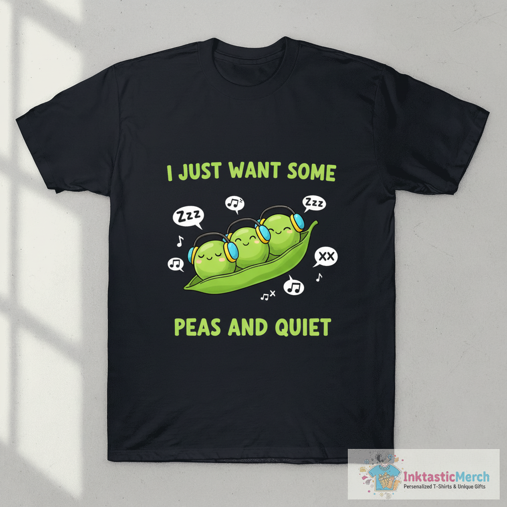 Bring your style to life with the “I Just Want Some Peas and Quiet T-Shirt” today!