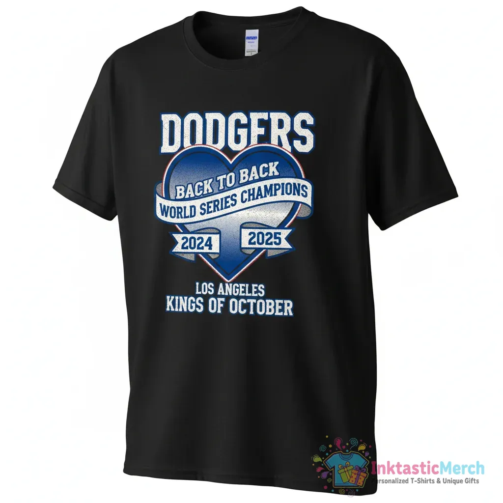 Show your ultimate pride with the Los Angeles Dodgers Back to Back World Series Champions Blue Heart Dates Shirt from InktasticMerch. This premium tee celebrates two incredible championship wins with a unique blue heart design featuring the iconic dates, making it a must-have for any true fan. Crafted from high-quality, soft, and breathable fabric, it offers all-day comfort and a durable print that honors the legacy of Dodger greatness.
