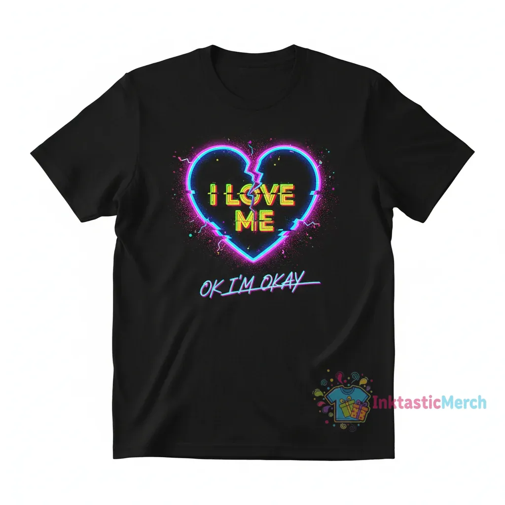 This design captures the essence of self-acceptance and confidence, drawing inspiration directly from the vibrant and expressive “it’s ok i’m okay” music video. The artwork is a visual representation of finding strength within, echoing Tate McRae’s journey of self-discovery. It’s more than just a graphic; it’s a statement of personal empowerment, rendered in a style that is both modern and deeply personal. Feel the message of “I Love Me” resonate with you every time you wear this unique piece, a constant reminder of your own inner power and individuality.