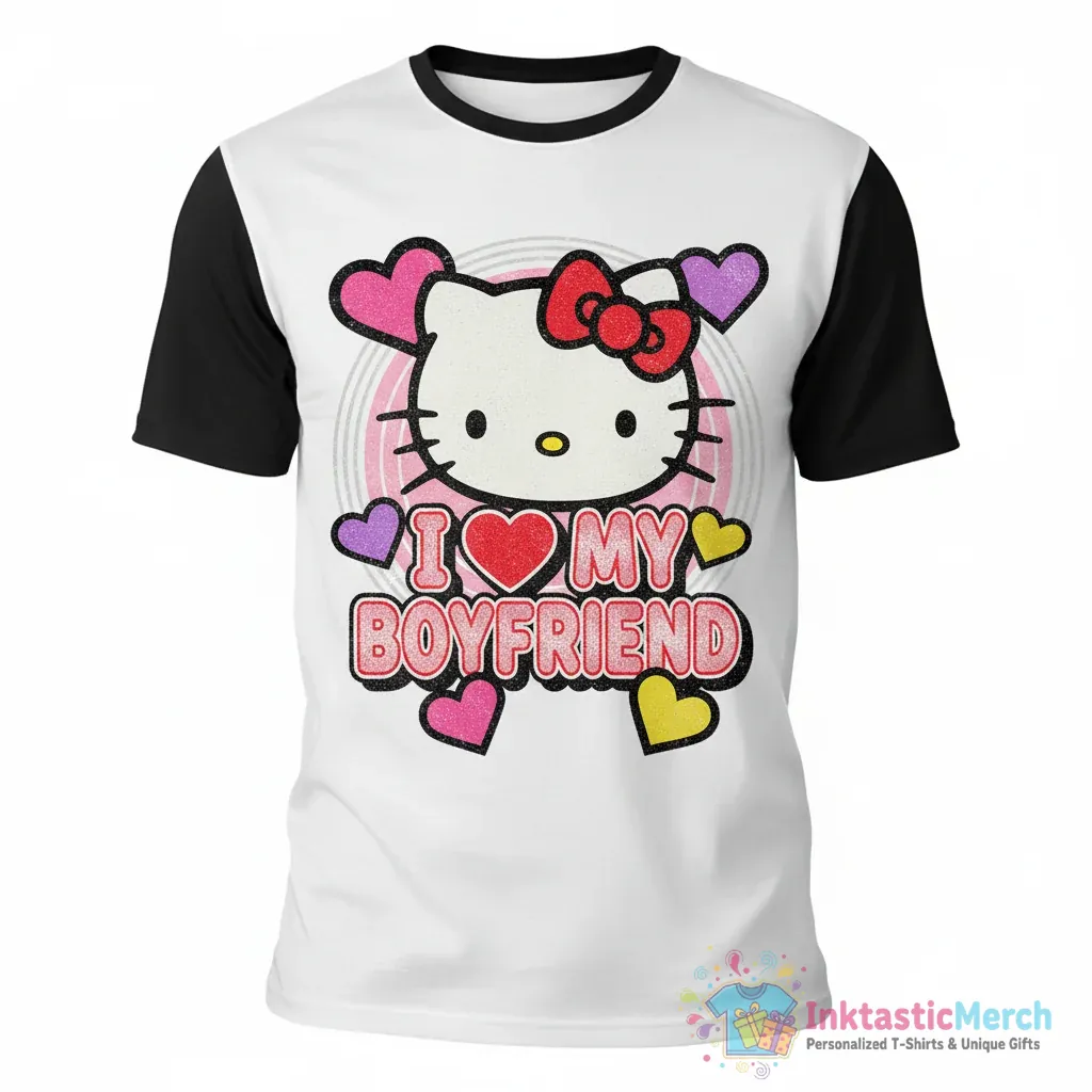 Show off your love with the adorable I Love My Boyfriend Hello Kitty T-shirt! Crafted from high-quality fabric, this tee offers exceptional comfort and durability, making it a favorite in your casual wardrobe. Discover more statement pieces and express your special connection through designs from inktasticmerch.com.