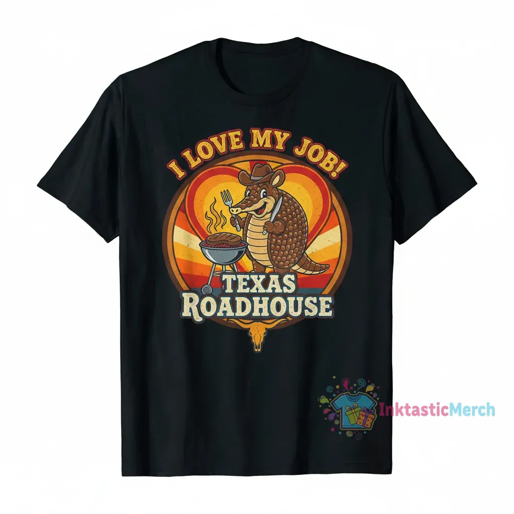 Show your pride with the ‘I Love My Job Texas Roadhouse Shirt,’ crafted from 100% ring-spun cotton for superior softness and durability. This comfortable and breathable t-shirt features a modern retail fit and high-quality print, designed to maintain its shape wash after wash, making it an ideal choice for dedicated employees and fans. Discover more quality apparel from InktasticMerch.