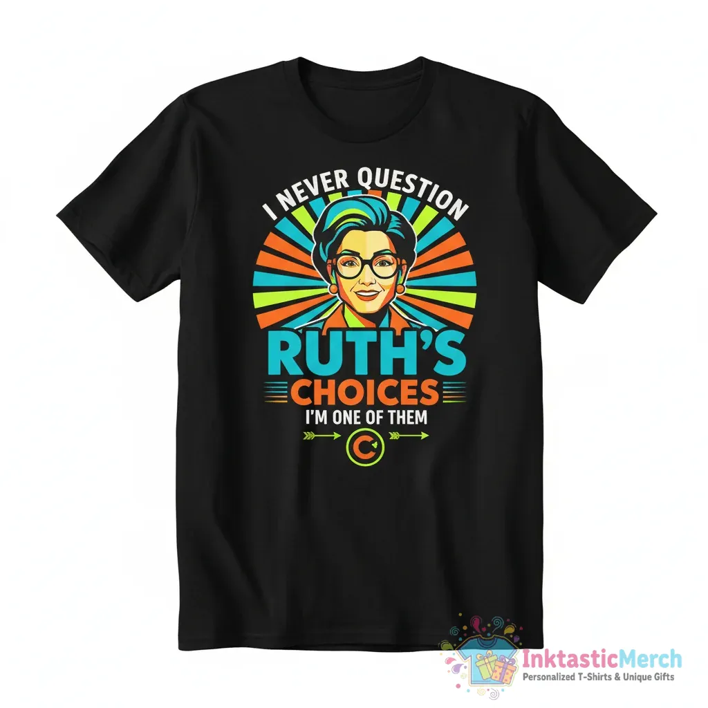 Show your unwavering support with the premium quality “I Never Question Ruth’s Choices Because I’m One of Them” shirt from InktasticMerch. Crafted from super-soft, high-quality fabric, this tee offers incredible comfort for everyday wear and makes a powerful statement of loyalty and shared belief.