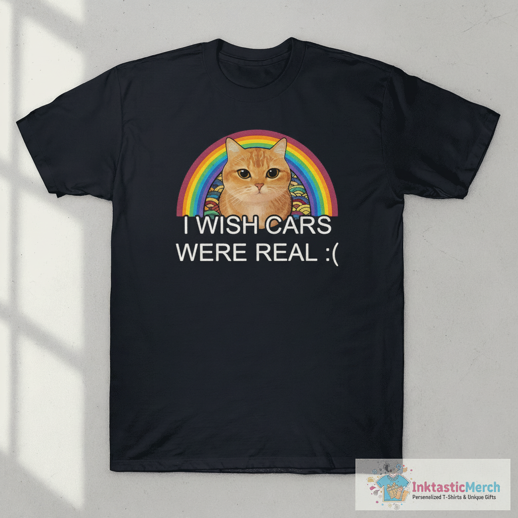 Show off your love for cats and a touch of whimsy with the I Wish Cars Were Real Cat Rainbow T-shirt from InktasticMerch. This tee features a playful, eye-catching graphic print on high-quality, super soft fabric built to last. Its durable material and versatile unisex fit ensure a comfortable and flattering look for expressing your unique personality.