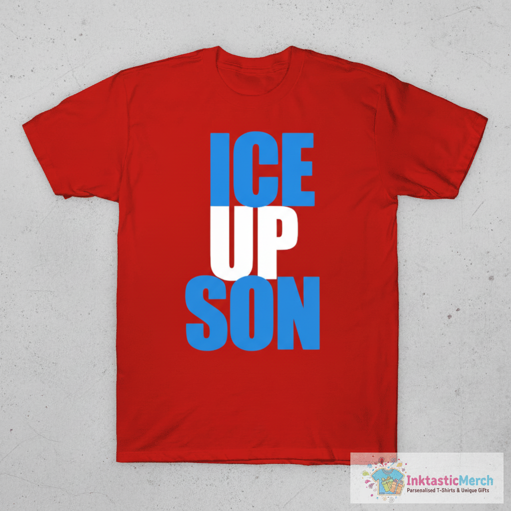 Show off your cool confidence with the Ice Up Son T-Shirt, a must-have for anyone who knows how to stay calm under pressure. Made with premium, breathable fabric, it feels as good as it looks, keeping you comfortable all day long, and the durable print ensures the design stays vibrant wash after wash. You can find this awesome tee and more at inktasticmerch.com.