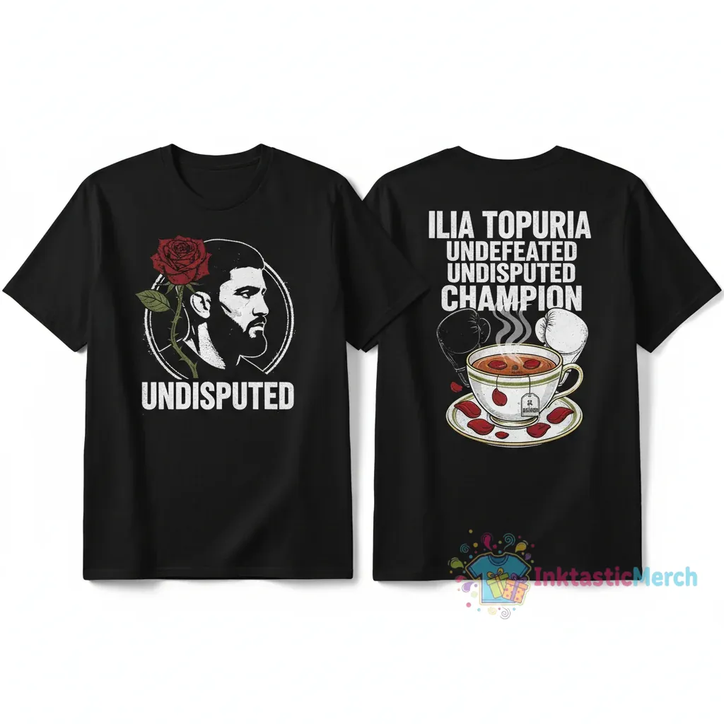 Channel iconic energy with the Ilia Topuria Undefeated Undisputed Tee from inktasticmerch.com. This tee is more than just a shirt; it’s a statement piece crafted from ultra-soft, high-end fabric for premium comfort and effortless drape. Experience unmatched softness and feel, making it your go-to for an effortlessly cool, street-ready look.
