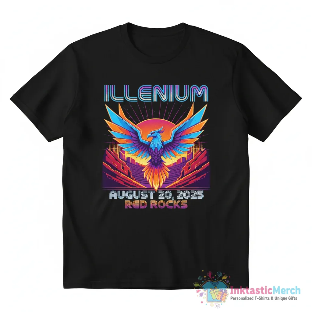 Bring your style to life with the Illenium August 20 2025 Red Rocks Logo Shirt today!
