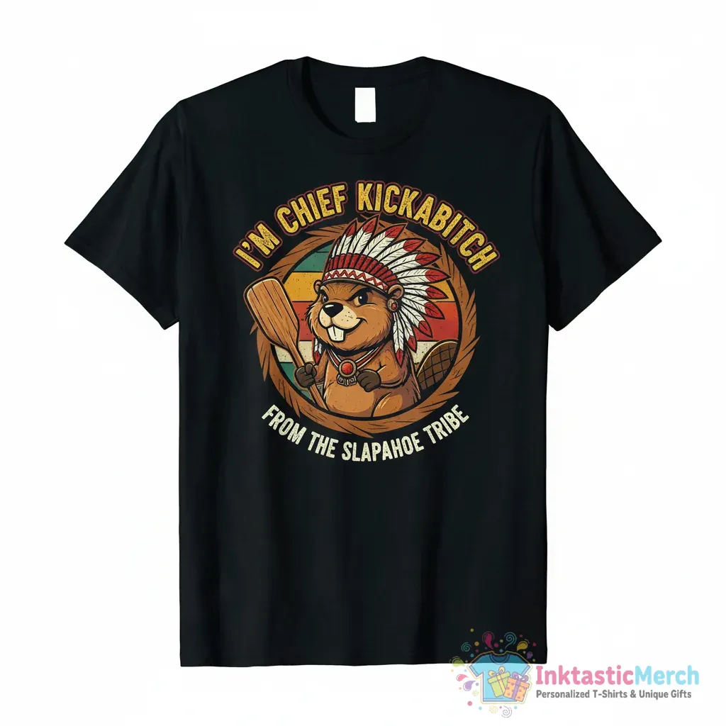 - Unique and hilarious “Chief Kickabitch from the Slapahoe Tribe” graphic.