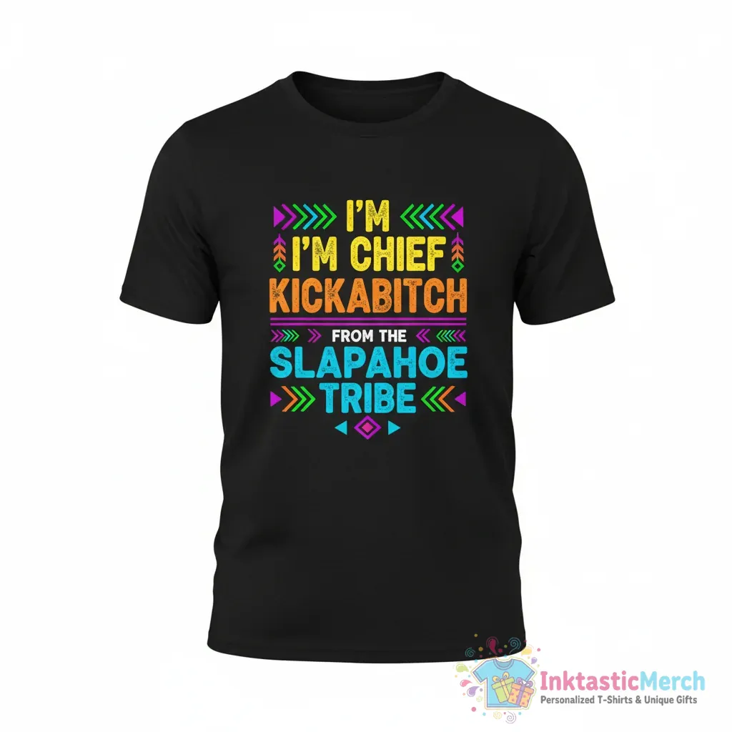 Unleash your inner spirit with the Chief Kickabitch From The Slapahoe Tribe T-Shirt, a unique and playful tee designed for those with a bold sense of humor and an appreciation for distinctive tribal-inspired art. This shirt isn’t just clothing; it’s a statement. Perfect for anyone who loves to stand out and share a laugh, it captures a fun, active vibe that’s sure to turn heads and spark conversations. Crafted for both comfort and style, this premium tee is your new go-to for expressing personality.