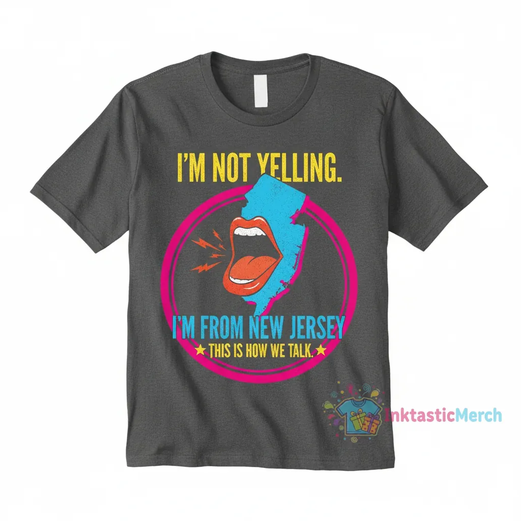 Showcase your New Jersey pride with this authentic and hilarious “I’m not yelling I’m from New Jersey this is how we talk” shirt. Crafted from a premium, ultra-soft fabric blend, this tee offers unparalleled comfort and a breathable feel, making it your go-to for everyday wear. Express your unique communication style and East Coast charm with this versatile and stylish statement piece, available at inktasticmerch.com.