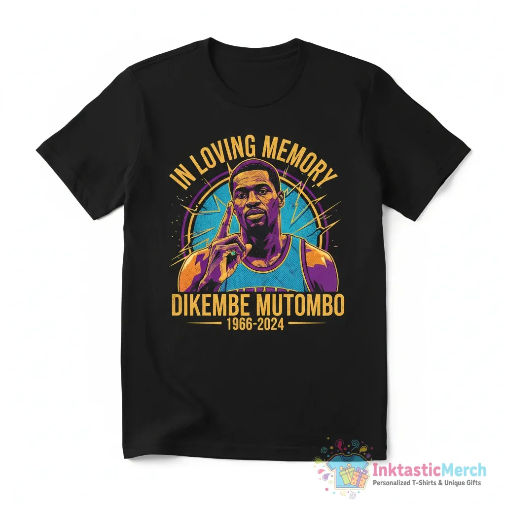 Celebrate the legendary career of Dikembe Mutombo with this commemorative “In Loving Memory Dikembe Mutombo Basketball Legend 1966-2024” T-shirt from InktasticMerch. This premium quality shirt is crafted from high-quality, breathable fabric for unparalleled comfort and style, making it a perfect tribute to a true sports hero.