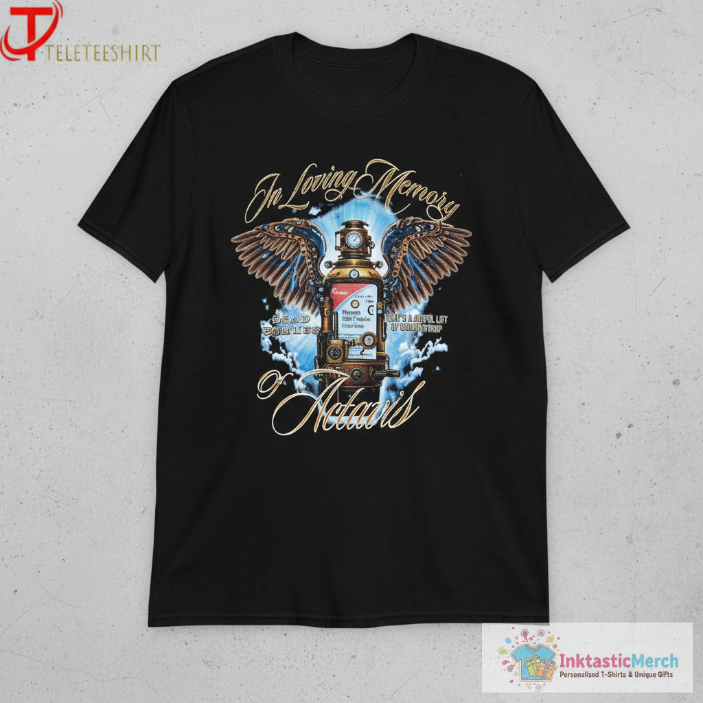 Pay tribute to your memories with the “In Loving Memory Of Actavis Dead Homie That’s A Awful Lot Of Cough Syrup Dead T-Shirts.” This unique tee is crafted for ultimate comfort and features eye-catching artwork that stands out, making it a perfect addition to your casual wardrobe. Discover more quality apparel from InktasticMerch.