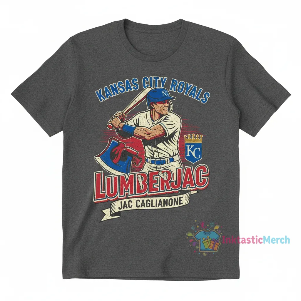 Show your team spirit with the exclusive Jac Caglianone LumberJac Kansas City Royals T-Shirt from InktasticMerch. Crafted from premium, ultra-soft cotton for maximum comfort and featuring durable fabric quality, this shirt is designed to hold up wash after wash. Its unique ‘LumberJac’ inspired artwork offers a cool, laid-back vibe perfect for any Royals fan.
