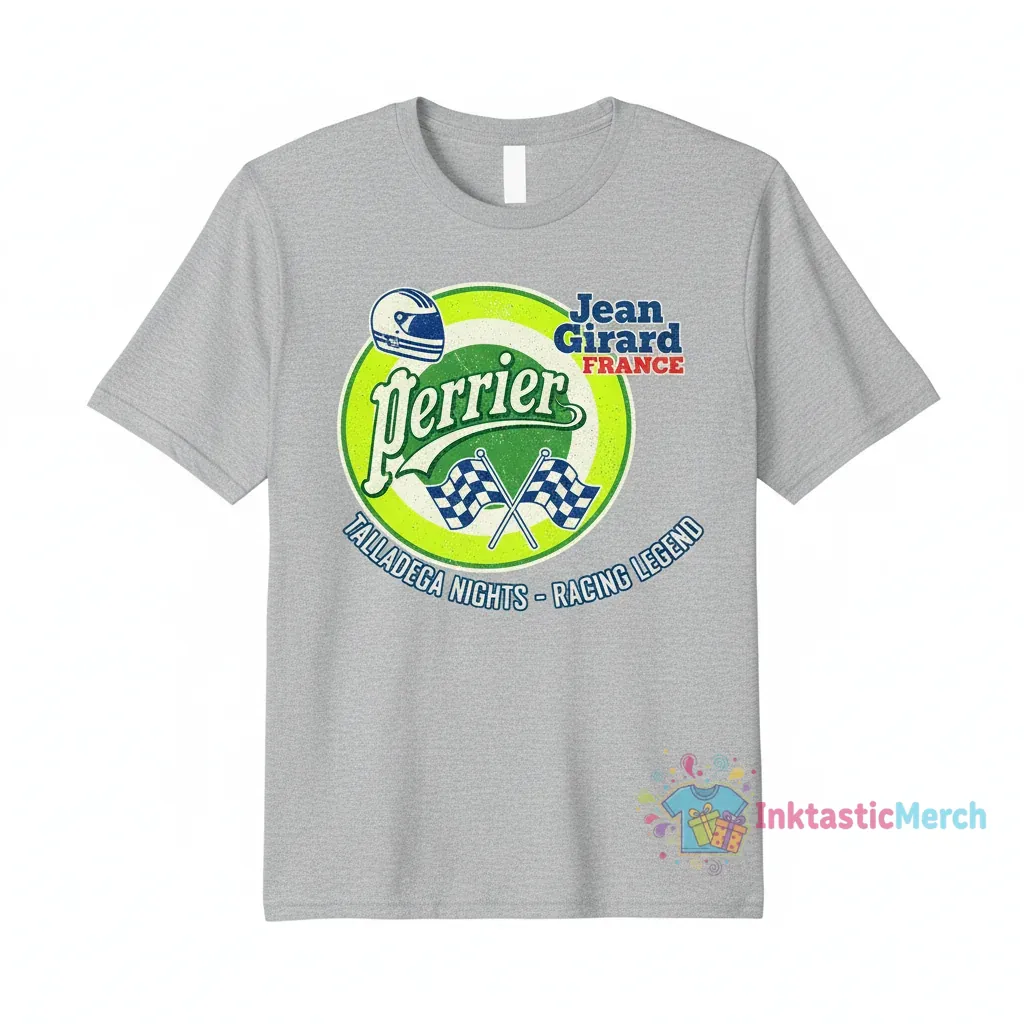 Show off your love for NASCAR and comedy with this Jean Girard Talladega Nights Perrier Jersey shirt, inspired by the iconic movie character. Crafted from ultra-soft, breathable fabric for ultimate comfort and featuring a vibrant, durable print, this statement piece from InktasticMerch brings a fun, retro racing vibe to your everyday style.