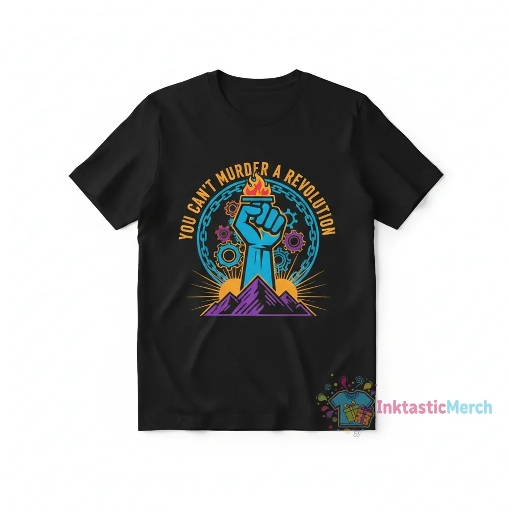 Make a statement with the Jessie Brozosky ‘You Can’t Murder a Revolution’ Shirt, a wearable piece of art designed for those who believe in the strength of ideas and the unstoppable nature of change. Crafted from super-soft, premium fabric, this tee offers exceptional comfort and durability, ensuring its vibrant graphic remains bold wash after wash. Discover more inspiring designs at inktasticmerch.com.