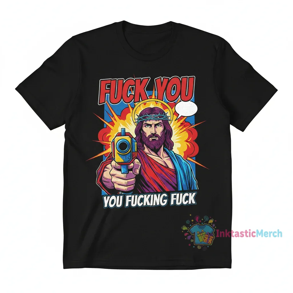 Jesus with Gun is more than just a design; it’s a powerful, thought-provoking statement. This artwork challenges conventional perceptions and sparks conversations. It represents a bold fusion of faith and modern rebellion, inviting wearers to embrace their individuality and stand firm in their convictions. It’s about owning your truth, no matter how unconventional it may seem. This design taps into a unique cultural moment, transforming a meme into a piece of wearable art that resonates with a defiant spirit.