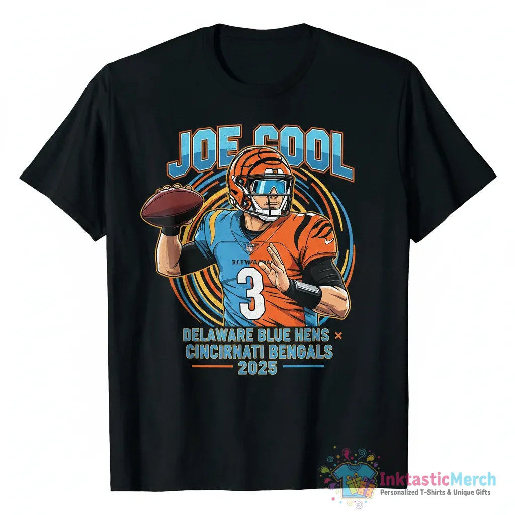 Bring your style to life with the Joe Flacco Joe Cool Delaware Blue Hens x Cincinnati Bengals 2025 shirt today!