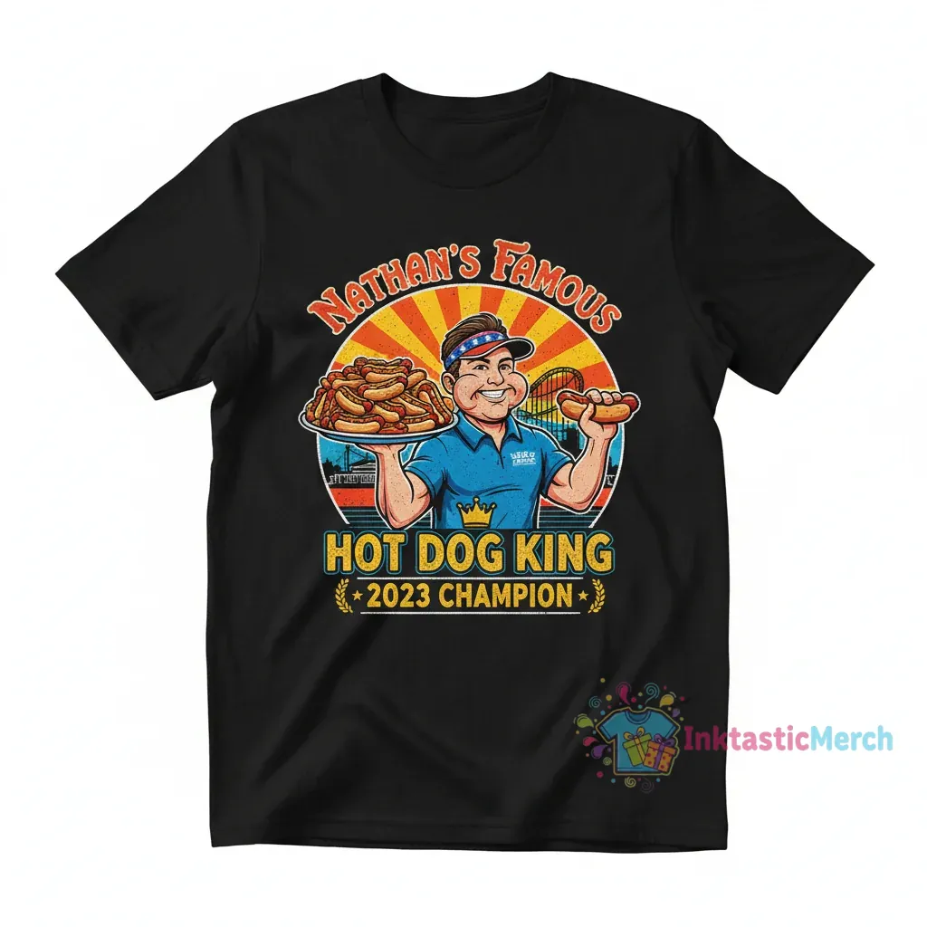 Show your support for the undisputed king of competitive eating with the official Joey Chestnut 2023 Nathan’s Famous Hot Dog Eating Contest shirt, a statement piece celebrating a legendary event and a true champion. Engineered for maximum comfort with 100% premium pre-shrunk cotton and vibrant, eco-friendly inks that resist fading, this tee from InktasticMerch is designed to be your go-to for years to come, maintaining its look and feel through countless wears and washes.