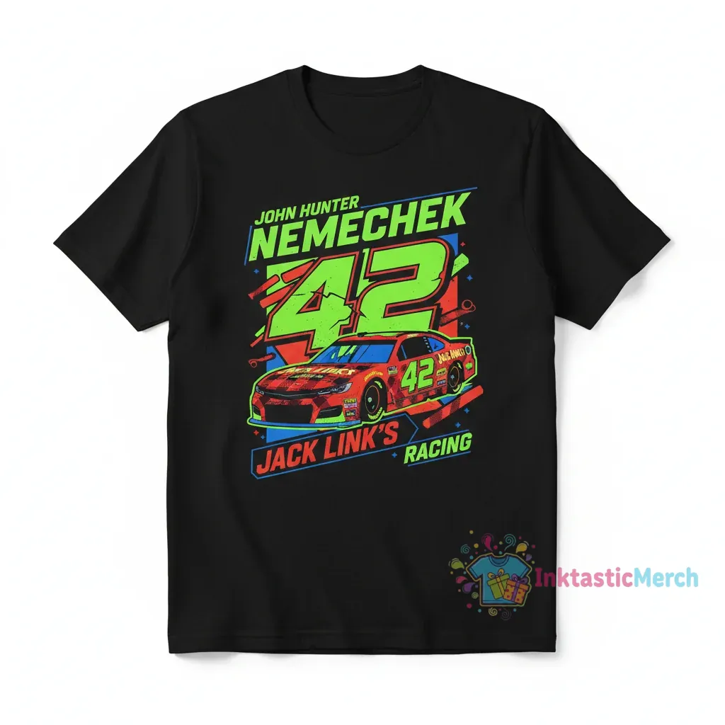 Channel the spirit of the track with this John Hunter 42 Nemechek Jack Link’s car tee, a statement piece designed for those who appreciate clean lines and bold statements. Crafted from premium, ultra-soft fabric, this tee offers unparalleled comfort and lasting style, embodying everyday luxury redefined. For more race-inspired apparel and other hot items, check out inktasticmerch.com.