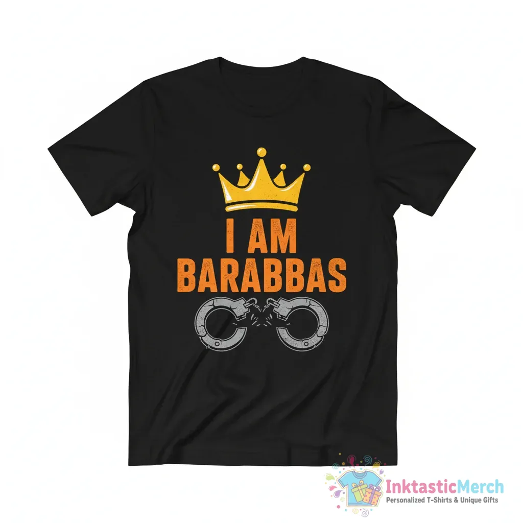 Make a powerful statement with the Josiah Queen, I am Barabbas T-Shirt from InktasticMerch. Crafted for comfort and designed to stand out, this tee is made from ultra-soft, premium quality fabric for all-day comfort and features a durable print that holds up through regular wear and washing. Its flattering unisex fit makes it a versatile choice for anyone looking to express their faith with a unique perspective.