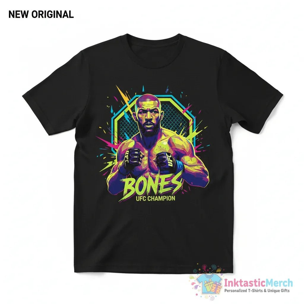 Celebrate UFC legend Jon Jones with the premium quality Jon Jones UFC Champ Shirt from InktasticMerch. This tee is designed for ultimate comfort and durability, featuring an eye-catching graphic that pays tribute to his championship legacy, making it a staple for any dedicated MMA fan.