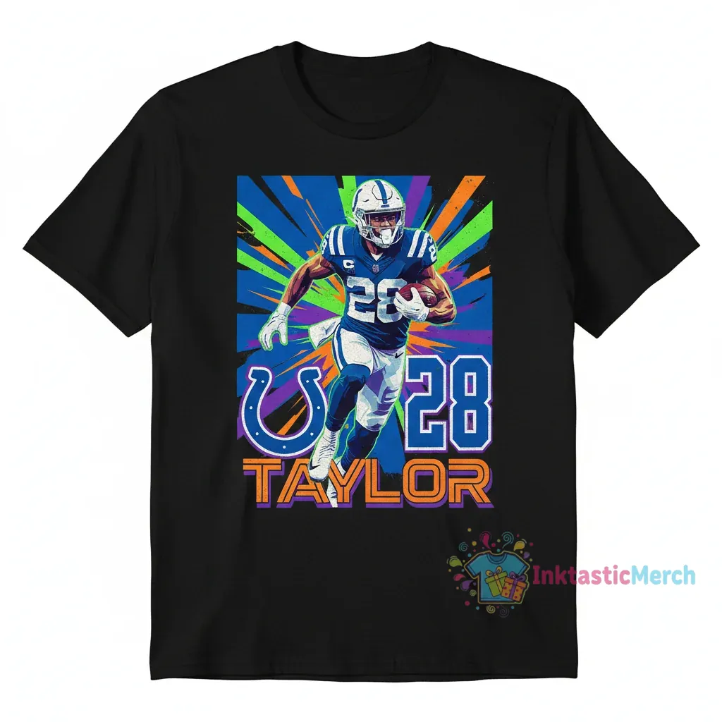 Celebrate the electric energy of Jonathan Taylor with this wearable masterpiece, designed to evoke a sense of movement and power. Crafted from a buttery soft fabric blend, this shirt offers premium comfort for your daily journey, making it a piece of art that speaks to the heart of every fan. You can explore more exceptional designs at inktasticmerch.com.