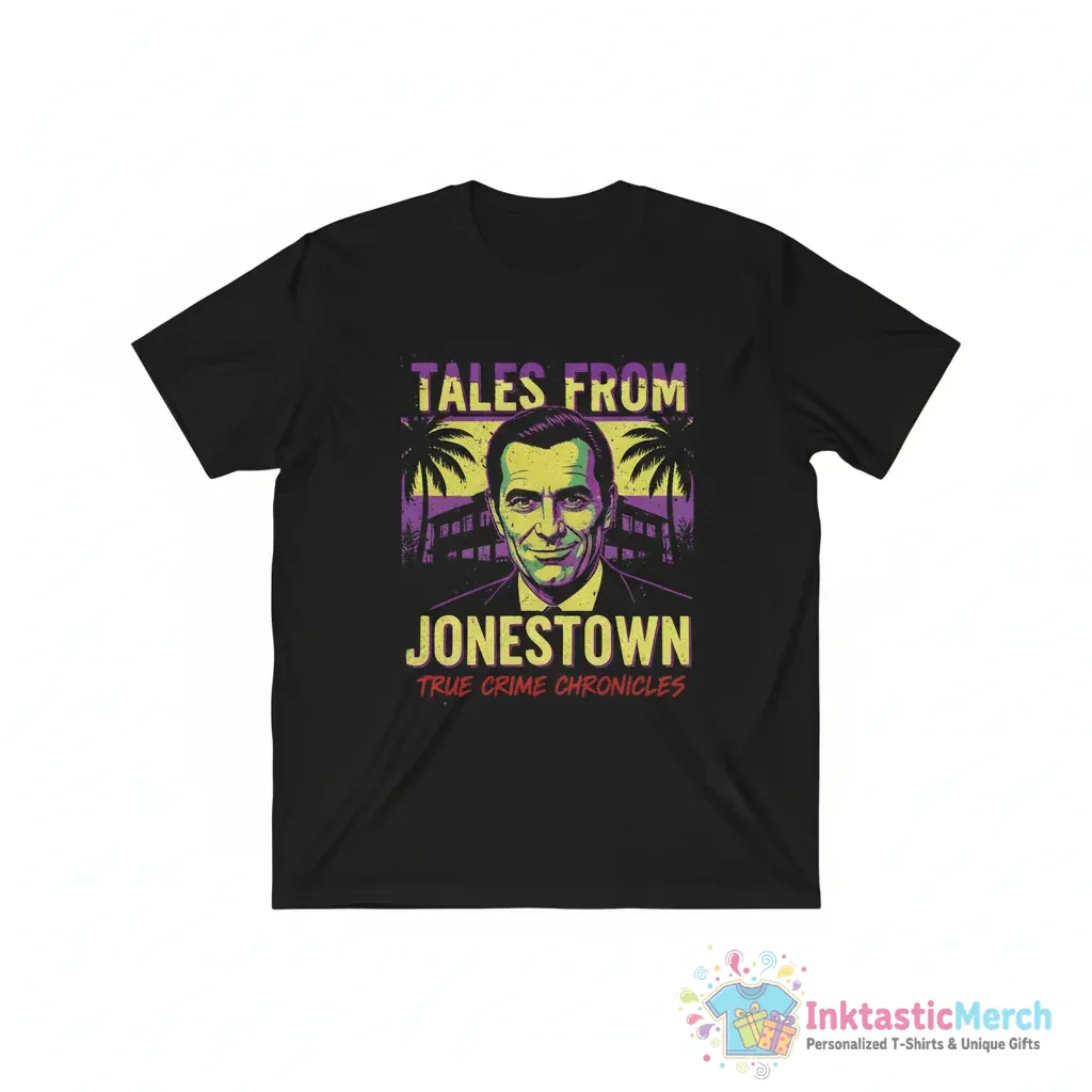 Dive into the chilling world of true crime with the Jonestown and Jim Jones Tales from Jonestown true crime shirt from InktasticMerch. This premium tee is crafted for comfort and designed to make a statement, letting you wear your interest in compelling true crime narratives with pride. It’s the perfect addition to your collection if you appreciate unique, thought-provoking apparel.