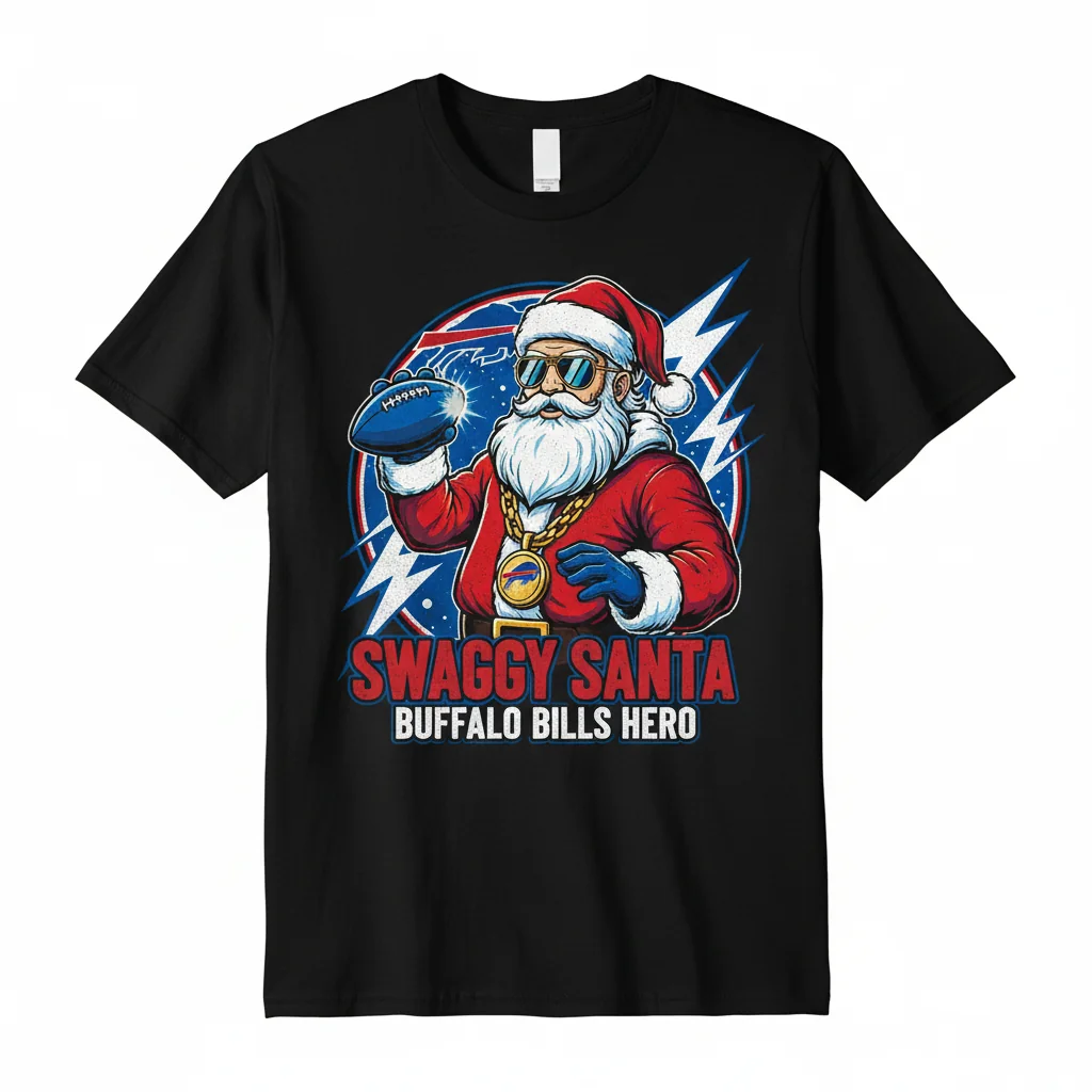 Show your Buffalo Bills pride with this festive and unique Josh Allen Swaggy Santa tee, and discover even more fan favorites in our Trending collection!