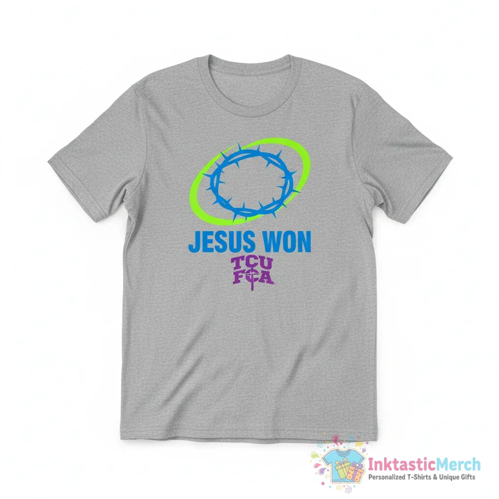 Show your faith and support your team with the Josh Hoove Jesus Won TCU FCA shirt from InktasticMerch. This premium quality tee is perfect for any TCU fan, crafted from ultra-soft, high-quality fabric for all-day comfort and durability, making it your new go-to for expressing faith and school spirit.