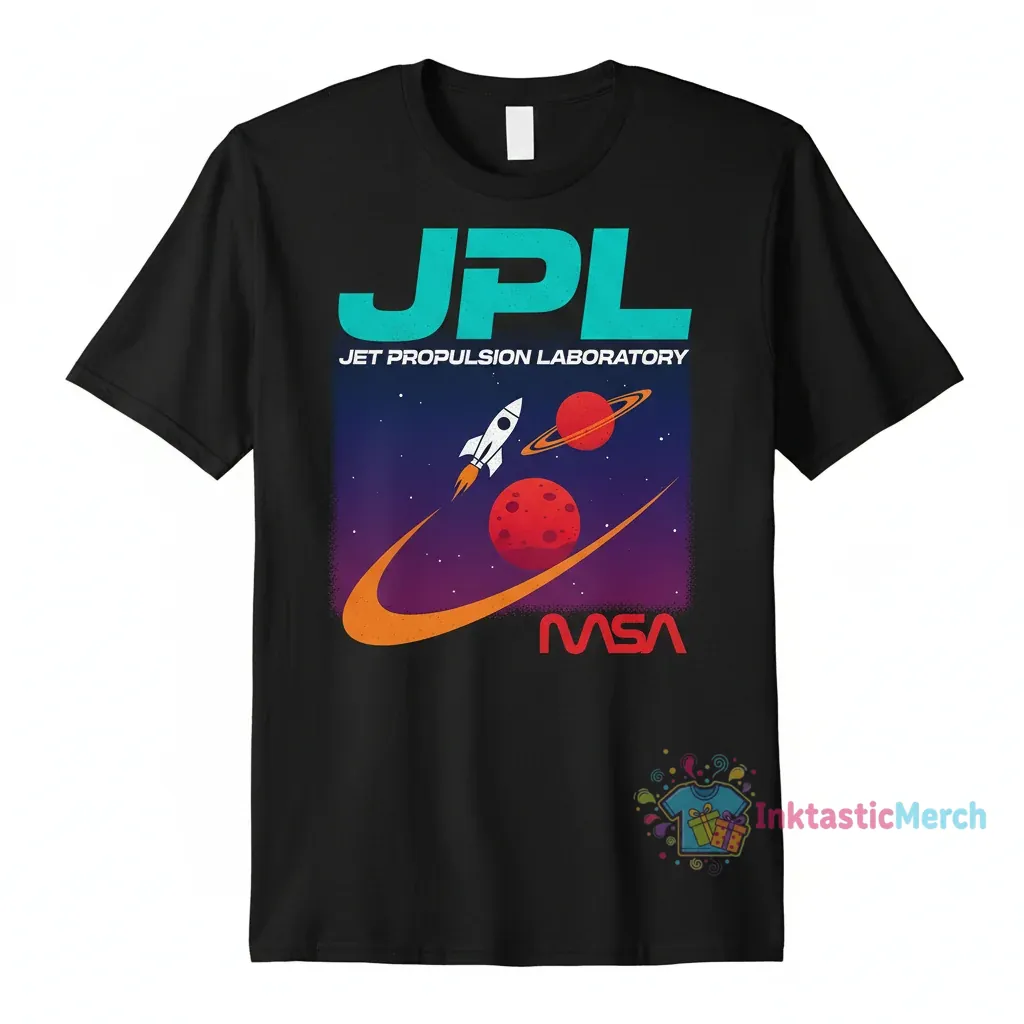 Show your love for space exploration with this official JPL Jet Propulsion Laboratory NASA T-shirt from InktasticMerch. Crafted from premium, soft, and durable heavyweight cotton, this tee offers superior comfort for everyday wear and lasting quality wash after wash. It’s the perfect way to express your passion for NASA and the cosmos in comfortable, classic style.