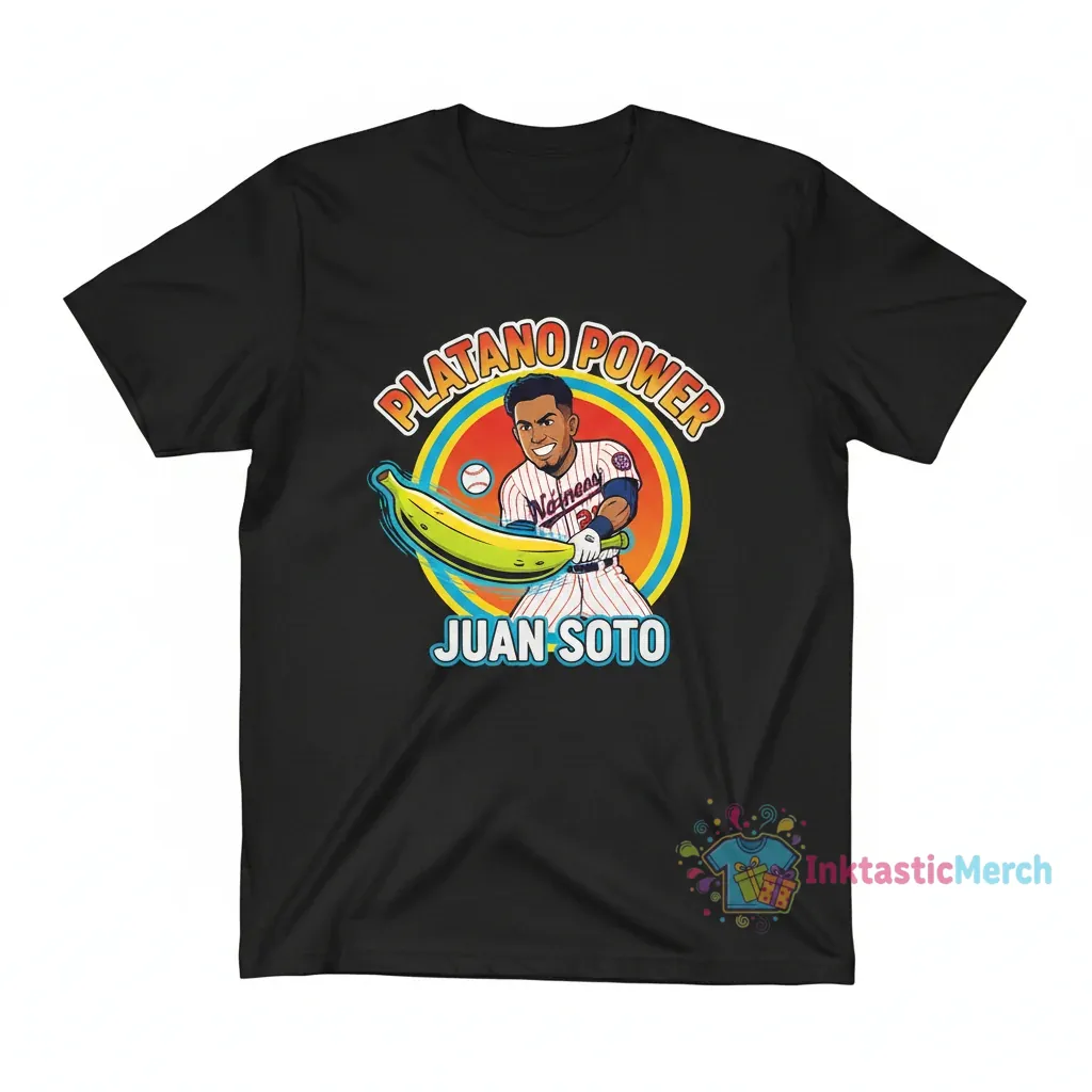 Show your support for baseball superstar Juan Soto with the official Juan Soto Platano Power T-Shirt. This premium tee celebrates the iconic “Platano Power” and is a must-have for any dedicated fan of the Washington Nationals or San Diego Padres. Crafted for comfort and style, this shirt is perfect for game days, casual outings, or as a standout piece in your sports memorabilia collection.