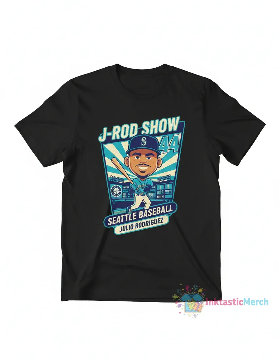 Show your love for Seattle baseball and the incredible Julio Rodríguez with this official bobblehead T-shirt from InktasticMerch. This shirt captures the excitement of the game and celebrates one of baseball’s brightest stars, offering a premium quality fabric for ultimate comfort and a durable print that lasts wash after wash. It’s a must-have addition for die-hard fans and collectors of unique sports apparel.