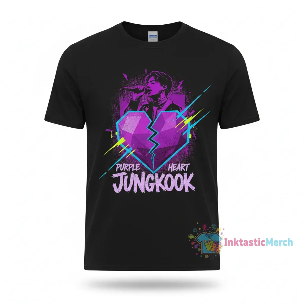 Unleash your inner ARMY with the iconic Jungkook Purple Heart BTS Heavyweight T-Shirt from InktasticMerch. Crafted from premium 100% heavyweight cotton and featuring vibrant, eco-friendly inks, this tee is designed for maximum comfort and durability, ensuring your BTS pride remains as strong as the fabric itself.