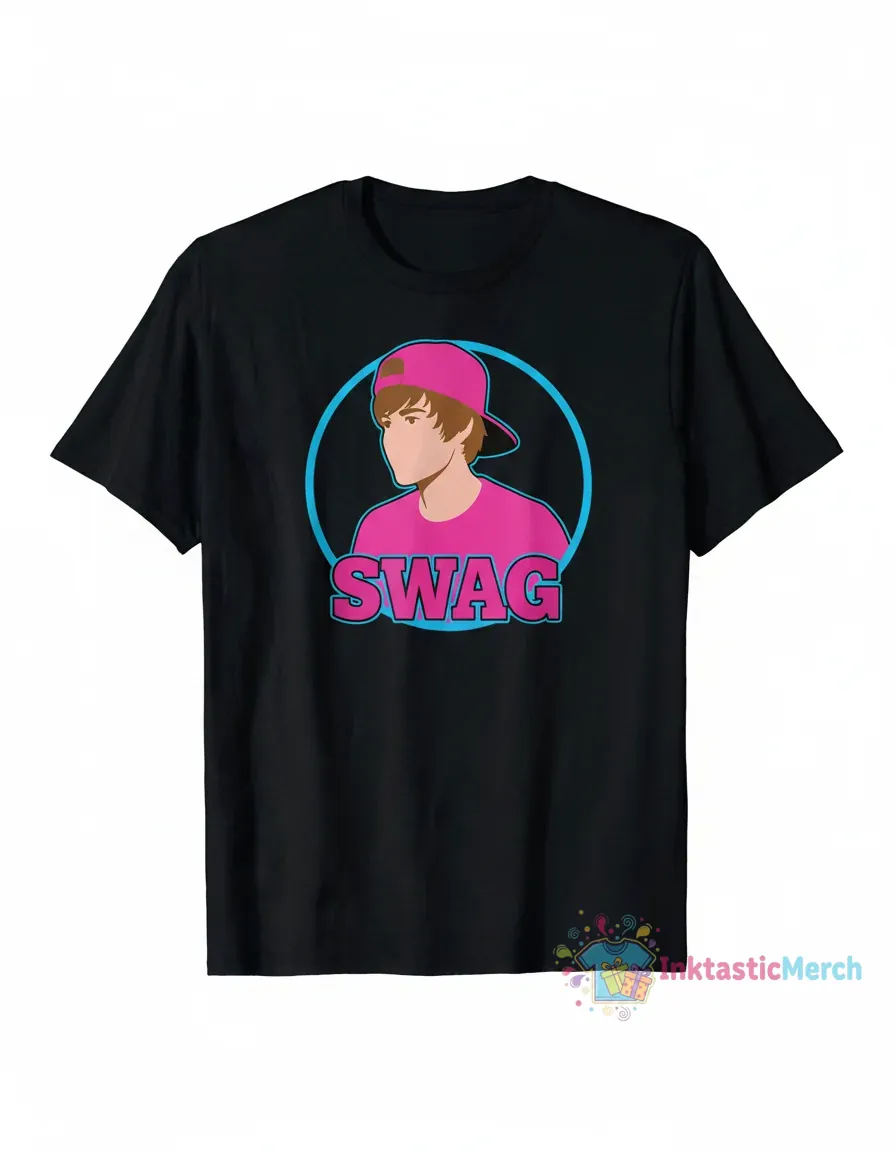 - Unique “Justin Bieber wearing Swag pink shirt” graphic