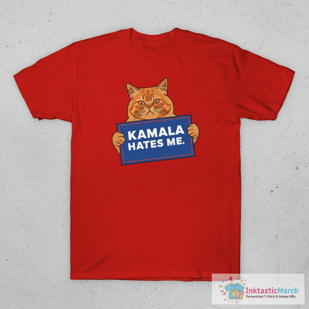 Bring your style to life with the Kamala Harris Hates Me Cat T-Shirts today!