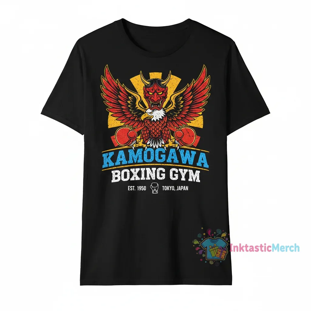 Introducing the Kamogawa Boxing Gym T-Shirt, an essential athletic apparel piece meticulously crafted from 100% ring-spun cotton for superior comfort and durability. Designed with a modern retail fit and reinforced construction, this high-quality tee from inktasticmerch.com is built to support your active lifestyle and showcase your dedication to boxing.