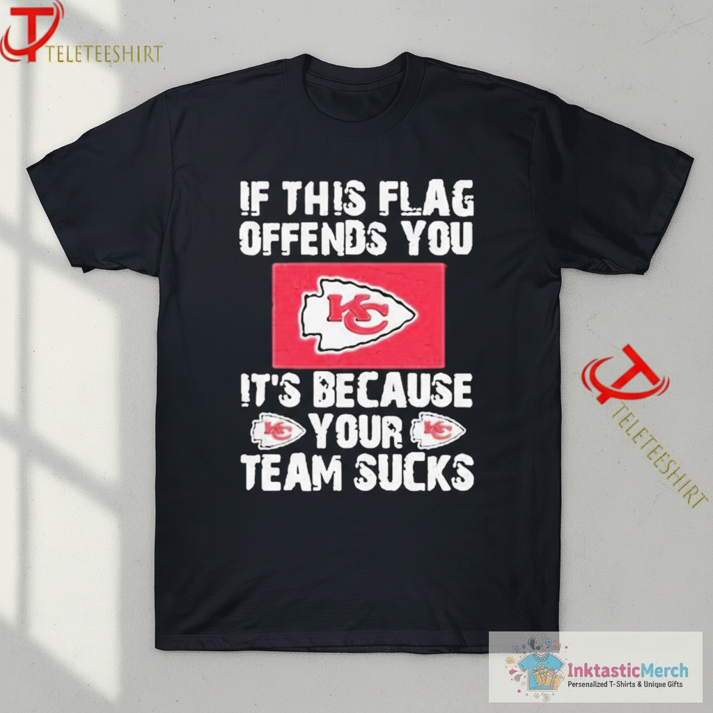 Show your unwavering support for the Kansas City Chiefs with the “If This Flag Offends You, It’s Because Your Team Sucks” T-shirt. This tee is more than just fan apparel; it’s a bold declaration of your team pride and a fun way to banter with rivals. Crafted for ultimate comfort and durability, it’s the perfect addition to any Chiefs fan’s wardrobe. Wear it to Arrowhead, watch parties, or just out and about to let everyone know where your loyalties lie. This shirt captures the spirit of Chiefs Kingdom and is sure to be a favorite for seasons to come.