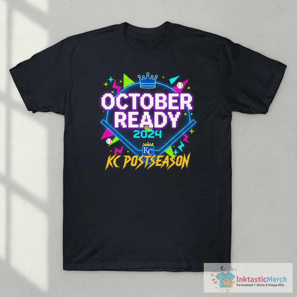 Show your unwavering support for the Kansas City Royals and their potential postseason run with this high-quality October Ready 2024 T-Shirt. Crafted for comfort and durability, this tee from inktasticmerch.com is the perfect way to celebrate every home run and strikeout in style.