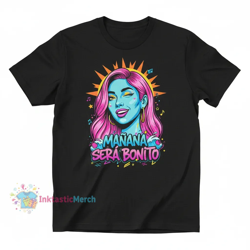 Show your love for Karol G with this awesome Manana Sera Bonito T-shirt from InktasticMerch. This black, heavyweight tee is made for comfort and designed to last, capturing the vibrant spirit of Karol G’s music with its iconic design and premium, soft fabric.