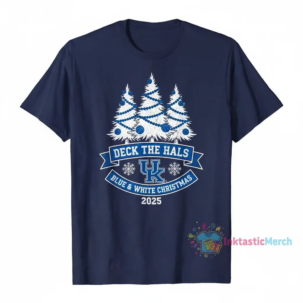 Show your Kentucky Wildcats spirit this holiday season with the “Deck the Halls With Blue and White Christmas 2025” T-shirt, a perfect blend of team pride and festive cheer. Crafted for comfort and style, this shirt lets you celebrate your team from Thanksgiving through the New Year. Discover more quality apparel from InktasticMerch.