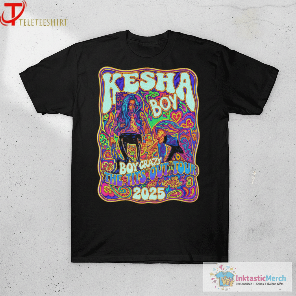 Bring your style to life with the Kesha Boy Crazy The Tits Out Tour 2025 T-shirts today!