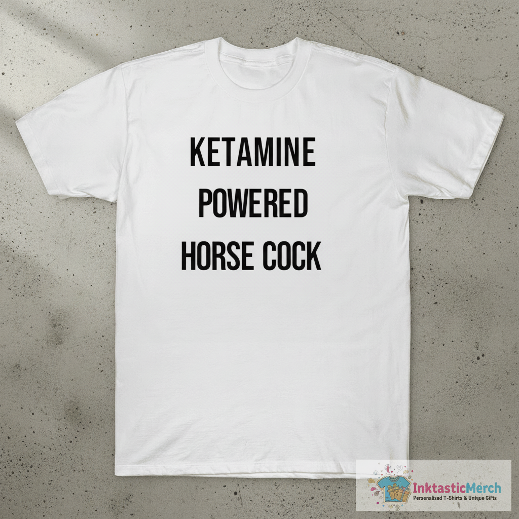 Bring your style to life with the Ketamine Powered Horse Cock T-Shirt today!