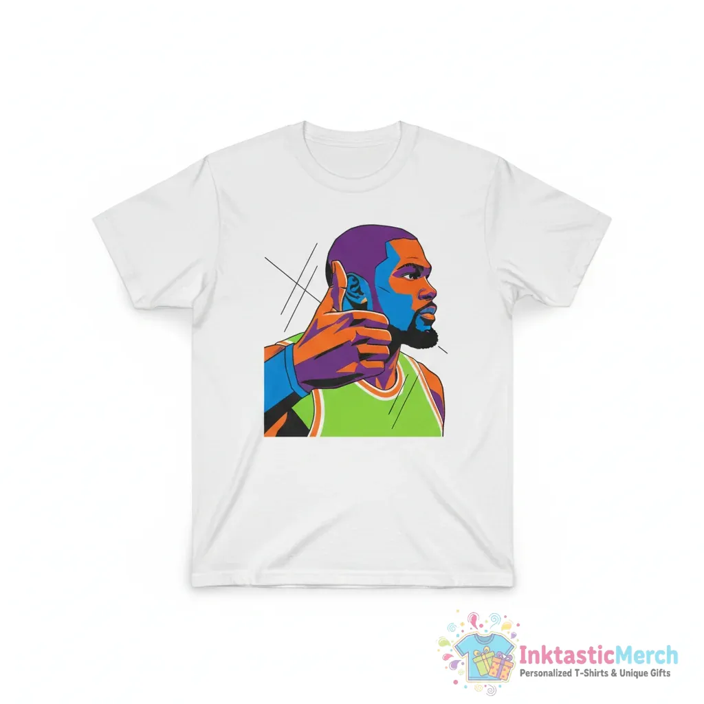 Show your appreciation for basketball legend Kevin Durant with this premium quality t-shirt. Crafted from ultra-soft fabric for exceptional comfort and a lasting soft feel, this tee features eye-catching, unique Kevin Durant artwork. Discover more comfortable and stylish apparel at inktasticmerch.com, the perfect place to express your passion for the game.