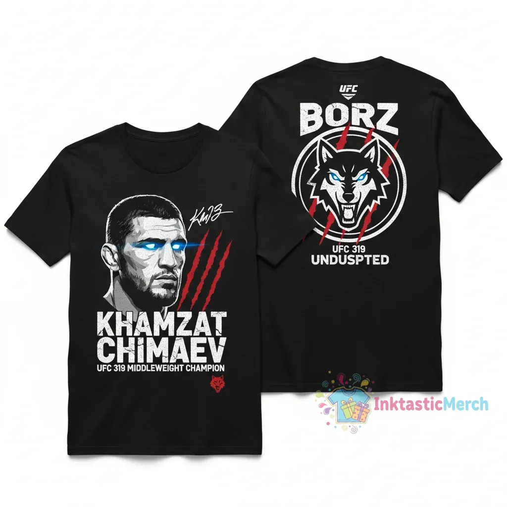 Embrace the legacy of Khamzat Chimaev with this UFC 319 Champion Signature Tee, designed for the modern minimalist with a street-ready vibe. Crafted from premium, ultra-soft fabric, this shirt offers next-level comfort and a relaxed yet refined feel, perfect for showcasing your appreciation for fight night dominance. Explore more high-quality fan apparel at inktasticmerch.com.