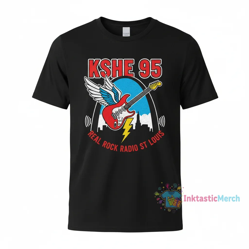 Show your love for the iconic KSHE 95 Real Rock Radio Station with this premium St. Louis area t-shirt, perfect for dedicated fans. Crafted from 100% ring-spun cotton and pre-shrunk for lasting shape, this tee offers ultimate comfort and durability, reflecting the enduring legacy of the legendary rock station. Find this and more at inktasticmerch.com.