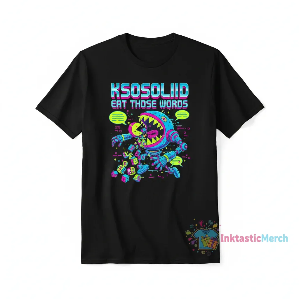 Embrace your bold statement with the Ksosoliid Eat Those Words shirt, a tee designed to make an impact and serve as a conversation starter. Crafted for those who aren’t afraid to stand out, this shirt merges eye-catching design with everyday wearability, promising unparalleled comfort with its premium fabric blend that feels incredibly soft against your skin. You can explore more unique designs at inktasticmerch.com.
